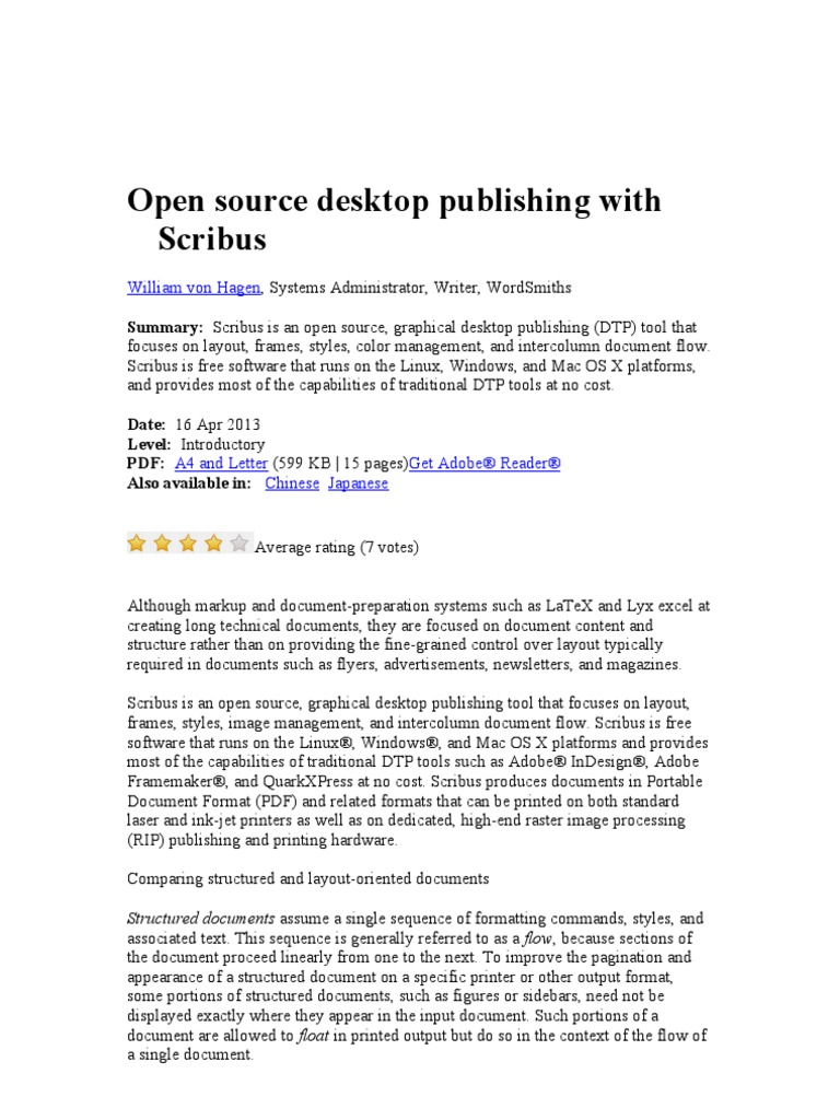 Open Source Desktop Publishing With Scribus Portable Document Format Page Layout from imgv2-2-f.scribdassets.com Create stunning documents with istudio publisher. Full featured desktop publishing tool for the professional and novice alike. See reviews of canva for enterprise, foxit pdf editor check out our list of free desktop publishing software.